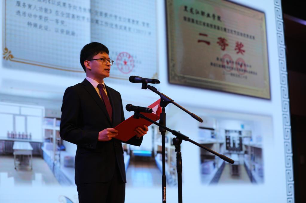 12月23日下午1点,庄严肃穆的工匠楼礼堂隆重热烈,与会教工含着热泪聆听了来自学校不同岗位的12位宣讲人讲述龙职发展建设中发生的感人故事。思政部宣讲人陈桂香讲述思政部教师队伍一路攀登向前,一路收获硕果,演绎学高为师、身正为范的精彩故事。校卫生院宣讲人孟妍讲述龙职天使应对突如其来的新冠疫情,日夜坚守疫情防控一线的故事。科研与校企合作处宣讲人朱晓丹讲述“双高”建设者们呕心沥血,甘于奉献的奋斗历程。组织部宣讲人李伟讲述情洒脱贫攻坚主战场,把“铺路石”精神谱写到基层驻村扶贫的“龙职”人王刚不畏艰辛带领村民脱贫攻坚的故事。教务处宣讲人邢颖讲述“龙职”教学改革队伍历经坎坷初心不改,顽强拼搏打造“龙职”模式与“龙职”经验的故事。学生工作部宣讲人卢丙洋讲述公寓管理人曲艳丽十年坚守,在平凡岗位默默绽放,立德树人、勇于担当的故事。后勤服务中心宣讲人刘广言讲述后勤基建队伍用辛勤和汗水、匠心铸造工匠楼的故事。信息工程学院宣讲人金忠伟讲述创新攻坚,追求卓越,锻造信息人铺路石品格的故事。团委(双创办)宣讲人邹春雷讲述“龙职”双创人凝心创新创业、倾情职业教育、甘为学生铺路的故事。质量监控中心宣讲人祝伯红讲述质量监控队伍勇挑重担,勠力同心,苦干实干,齐心拼搏,打赢诊改试点战的故事。机械工程学院宣讲人范振铎讲述数控技术“双高”专业群建设队伍实事求是,严谨务实,为学校高水平专业群建设提供坚强保证的故事;保卫处宣讲人周万举讲述疫情危机中守护校园平安,胜利完成输送国防建设者庄严使命,获得黑龙江省军区十大最美国防动员人物荣誉的铿锵玫瑰廉清华的故事。