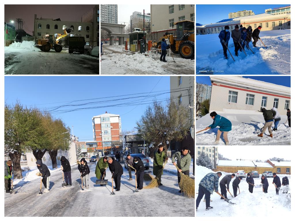 后勤党员干部职工齐心协力、不辞辛苦、不畏严寒、顶风冒雪积极投入清雪战斗,为全校师生正常工作学习和生活开辟了一条畅通之路、温暖之路、安全之路。