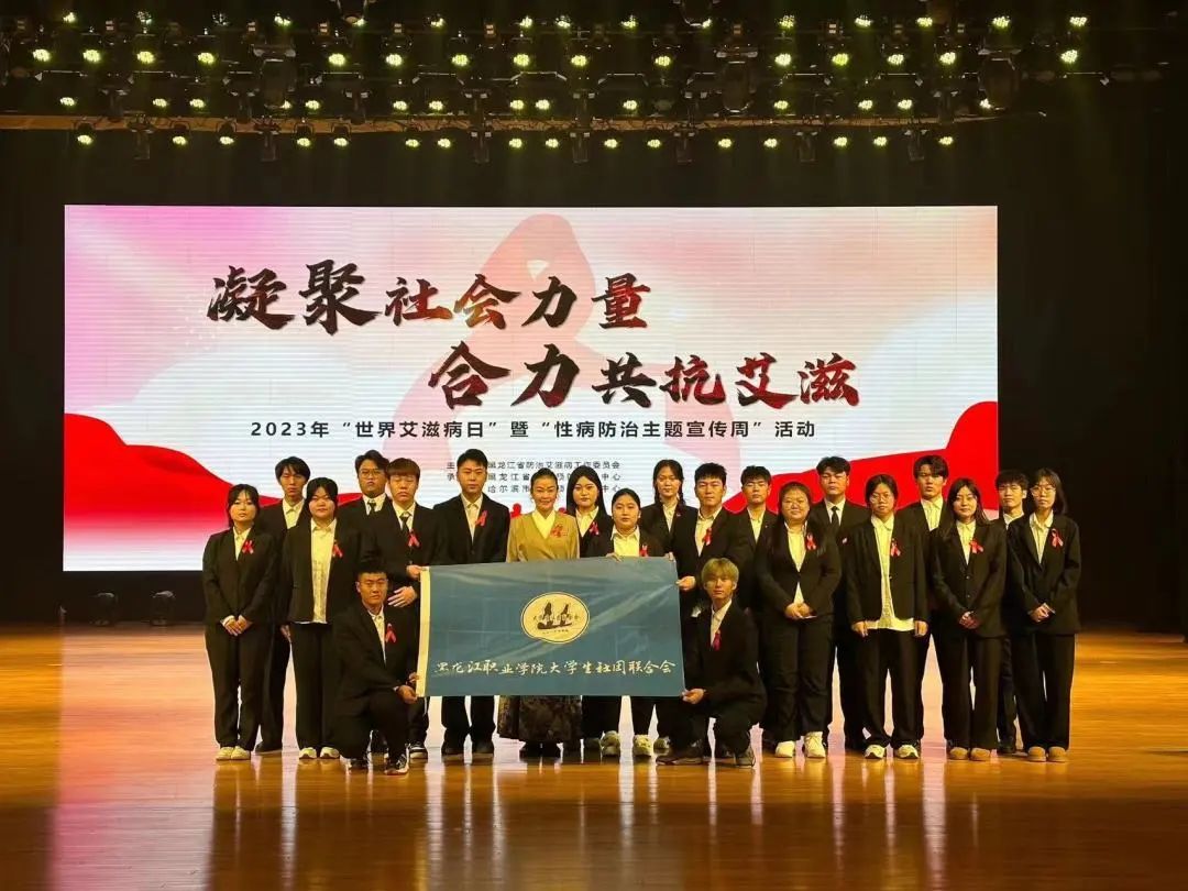 为提高广大群众预防艾滋病的安全意识,大力倡导文明健康的生活方式,由省防治艾滋病工作委员会主办,省卫健委、省教育厅等部门承办的2023年“世界艾滋病日”暨“性病防治主题宣传周活动”在哈尔滨工程大学启航剧场隆重举行。在哈49所高校学生代表和社团代表共同出席、参与了活动。RAYBET官网社团指导教师、校团委组宣办主任唐晓恬代表RAYBET官网学生社团参加活动。