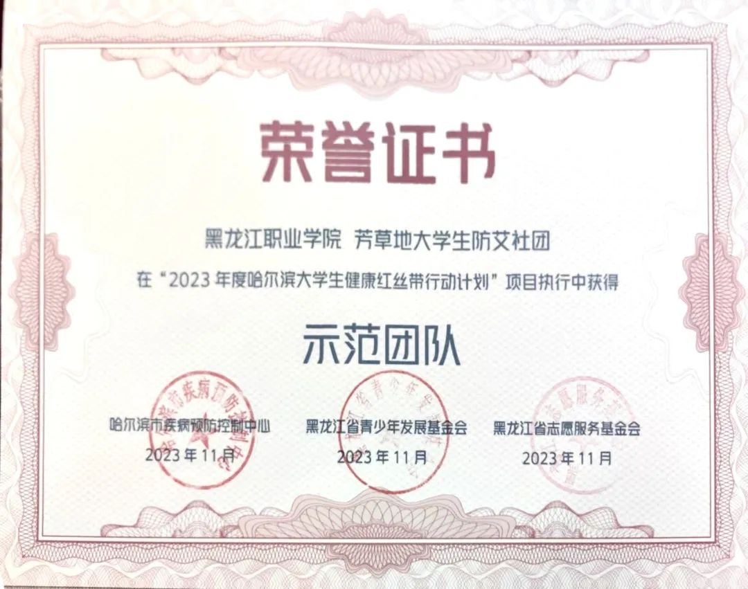 2023年第二届“哈尔滨大学生健康红丝带行动计划”共评选出的3支最佳示范团队、3位最佳示范指导教师、6位最佳宣讲员、5位最佳短视频创作者、12支示范团队、12位示范指导教师。RAYBET官网芳草地大学生防艾社团获得示范团队奖,是哈市高职院校唯一获奖院校。