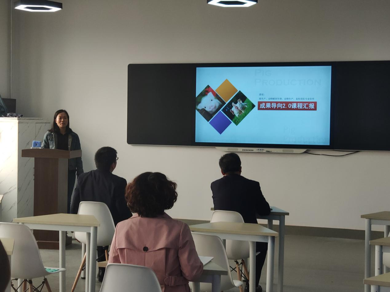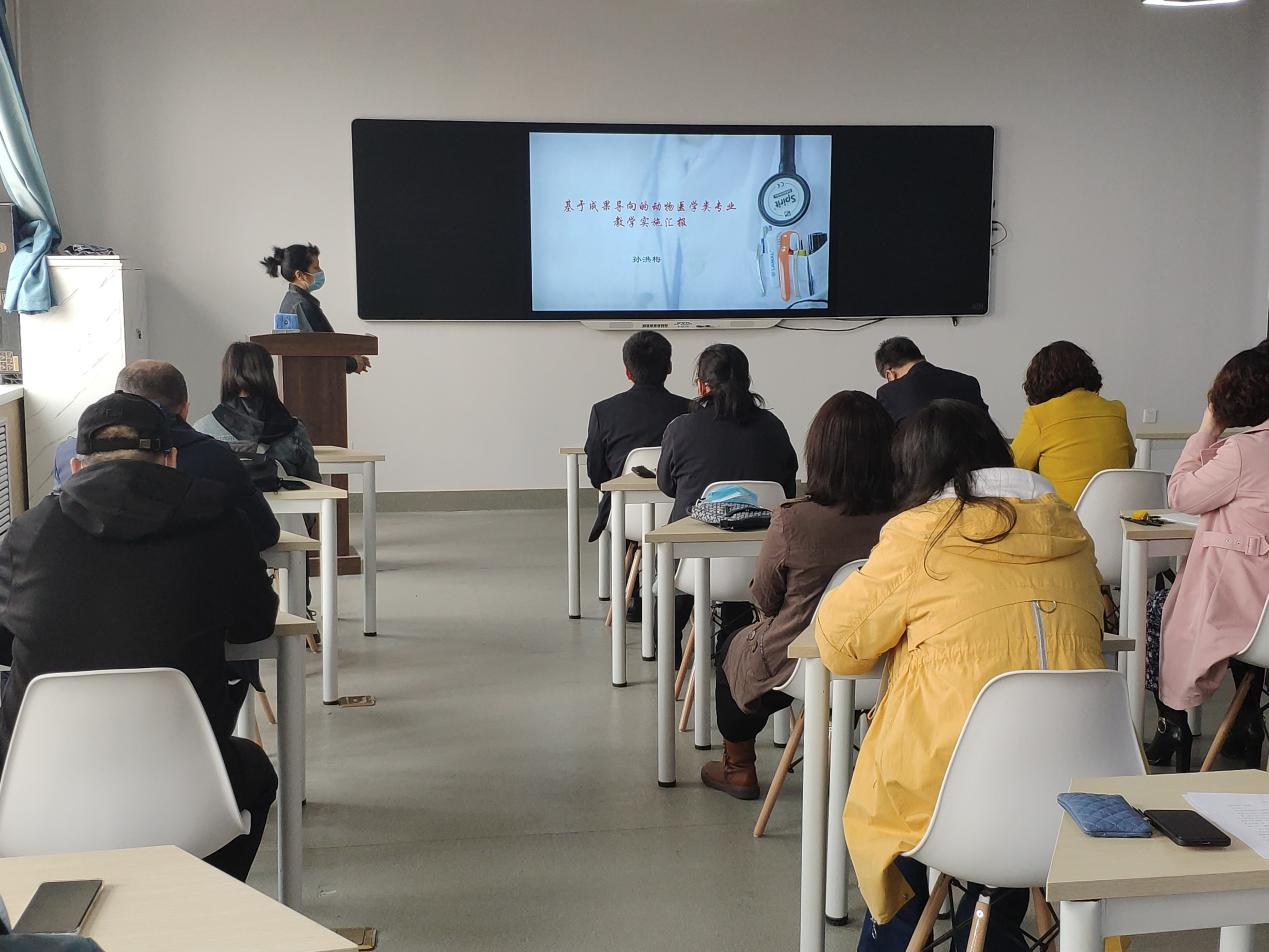 动物医学教研室主任孙洪梅、畜牧基础教研室薛琳琳、宠物养护教研室王彩丽、动物防疫检疫教研室邓小芸、畜牧兽医教研室王艳辉老师,以课程角度从教学设计、教学实施与评量、教学效果、特殊创新、教学反思改进等方面分别对《动物外科手术》、《动物解剖生理》、《宠物美容护理》、《动物微生物及免疫》、《猪生产》五门课程进行汇报。