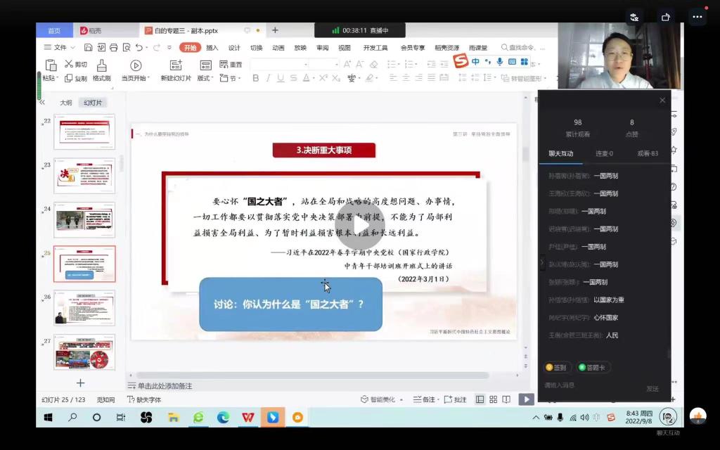 新学期开学以来,马克思主义学院认真贯彻学校关于提高教学质量的系列工作部署。8月22日起,学院组织开展了系列集体听课活动,学院督导组全体成员参加,副院长徐瑛主持。