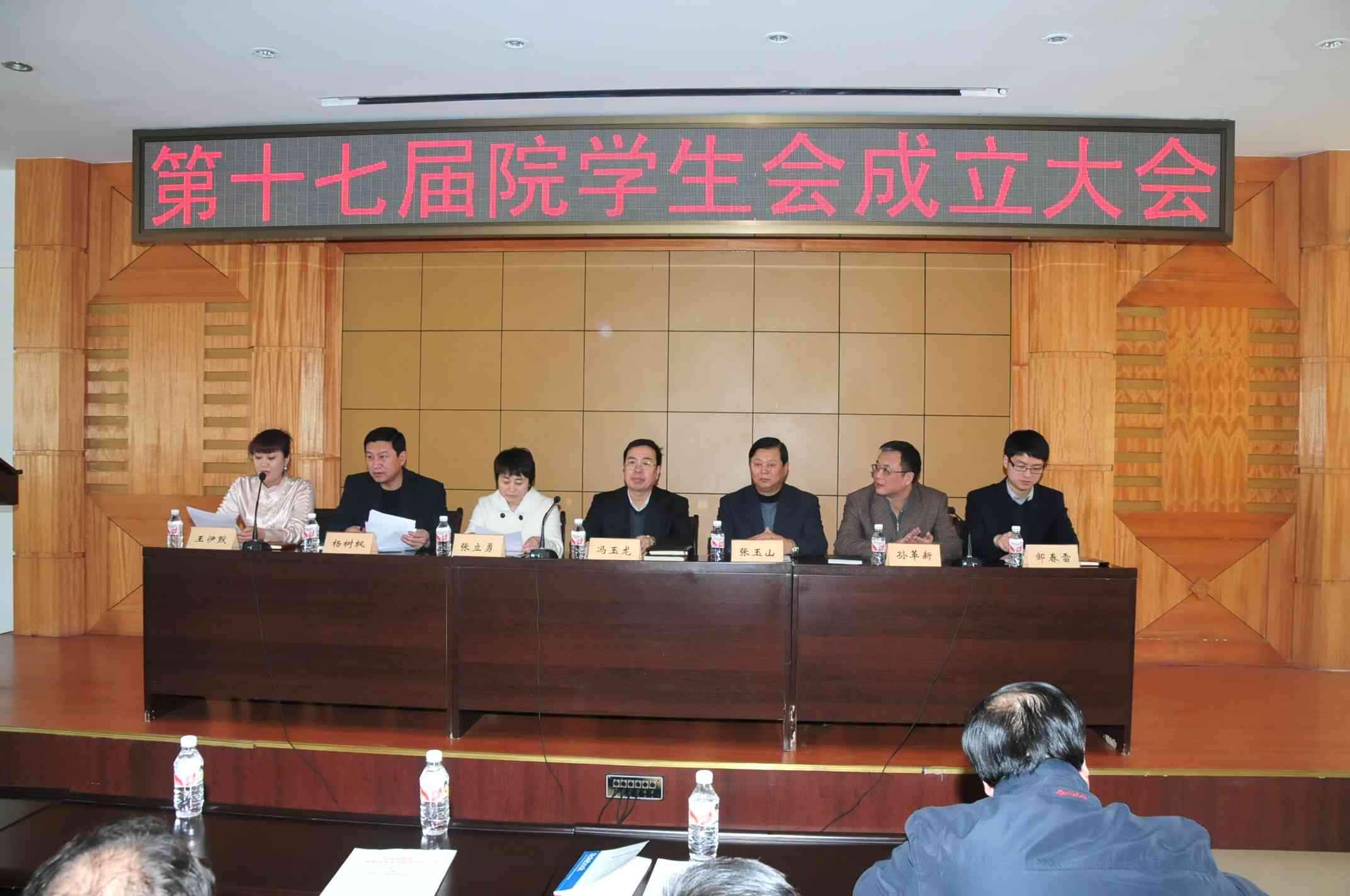 会议宣读了第十七届团委委员和院学生会学生干部的任命文件,宣读了院学生会的工作章程,第十七届院学生会主席王世冰同学代表新一届学生会作了大会发言。