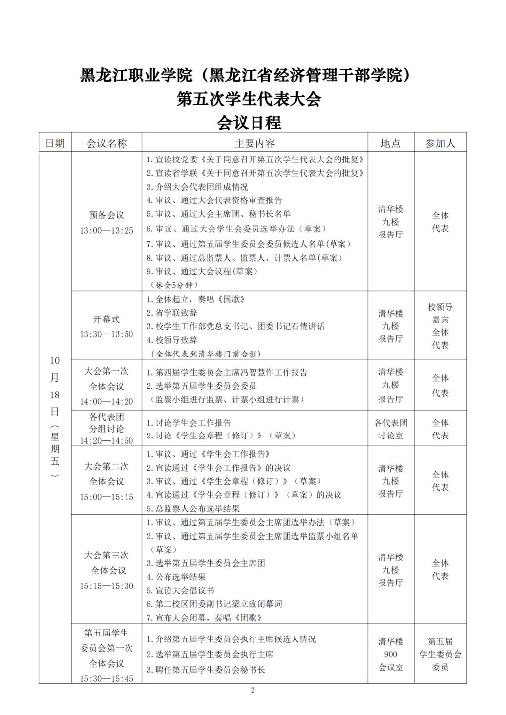 RAYBET在线登录平台(黑龙江省经济管理干部学院)第五次学生代表大会会议日程