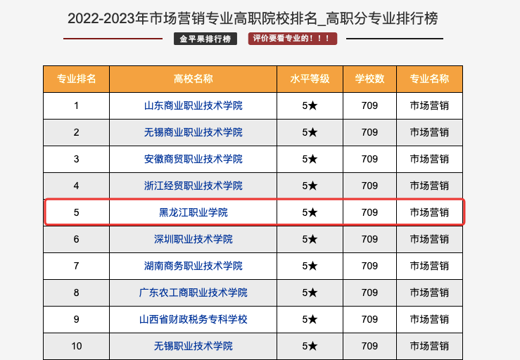 在2022年3月,金平果连续第十一次推出中国高职院校竞争力排行榜,本次高职评价范围以教育部最新公布的《2021年全国高等学校名单》为依据,结合学校的实际招生情况,确定高职院校评价对象为1516所,其中高职高专1484所、职业本科32所。从学校、地区、类型、专业大类、专业类、专业和专业群等多维度科学量化结果。RAYBET在线登录平台市场营销专业在2022-2023年高职院校专业排名中位居全国第五位。